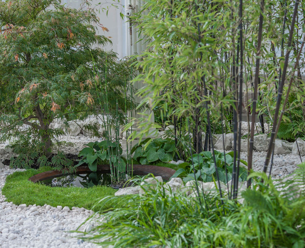 An English-Japanese garden, a tribute to the horticultural traditions of both our nations, is created by blending the essence of our cultures through the selection of plants and chalk stones. This fusion intertwines within the historic hexagonal structure of the Temperate House, which was built in1862 at the Royal Botanic Gardens, Kew.